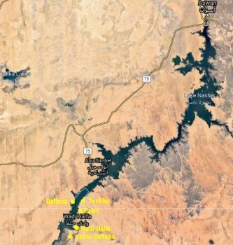 Carte des principaux sites archéologiques de la Basse et de la Haute Nubie